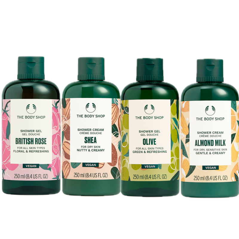 Indulge your senses with our Floral & Nutty Shower Cream Collection, a curated set of four luxurious shower experiences designed to cleanse, hydrate, and envelop your skin in delightful fragrances. Begin with the British Rose Shower Gel, infused with English rose extract and Community Fair Trade organic aloe vera, offering a gentle cleanse and a fresh, floral scent that leaves your skin feeling soft and refreshed. The Shea Shower Cream provides a rich, creamy lather that gently cleanses and hydrates dry skin, leaving it feeling soft and nourished with a warm, nutty aroma. For those with dry, sensitive skin, the Almond Milk Shower Cream is enriched with Community Fair Trade organic almond milk from Spain, delivering a soothing cleanse and a comforting, nutty fragrance. Lastly, the The Olive Shower Gel, transport your body to the Mediterrean for a freshly-scented, invigorating wake-up shower with our Olive Shower Gel, where skin is left feeling naturally cleansed and seductively soft