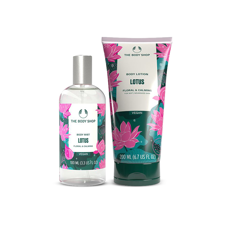 The lightweight Body Lotion melts effortlessly into the skin, delivering deep nourishment and leaving it feeling soft, smooth and replenished. Paired with the refreshing Body Mist, this set envelops you in a dewy blend of lotus, blooming rose, pink pepper and sweet patchouli—creating a soothing, long-lasting scent that uplifts your senses.