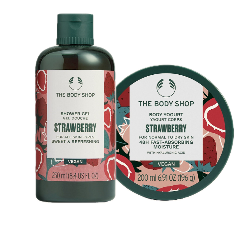 Indulge your senses in a fresh, fruity escape with this delightful Strawberry body care pair from The Body Shop. The Strawberry Shower Gel (250?ml) is a soap?free, gel cleanser infused with cold-pressed strawberry seed oil and Community Fair Trade honey. It creates a lavish lather that gently cleanses while wrapping your skin in a juicy-sweet aroma reminiscent of sun-ripened berries—perfect for an uplifting, everyday indulgence. Follow with the Strawberry Body Yogurt (200?ml), a lightweight, fast-absorbing gel-cream enriched with strawberry juice and organic almond milk. This 100% vegan formula delivers up to 48?hours of moisture and leaves skin feeling smooth—never sticky—so you can jump into your day with confidence and fragrance that lingers.